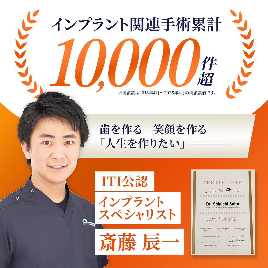 当院のDr.斎藤辰一は世界最大規模の学術団体ITI (International Team for Implantology)公認インプラントスペシャリストの数少ない1人です。